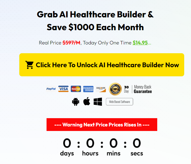 AI Healthcare Builder is a no-code solution designed to help you build complete healthcare apps, AI assistants, digital portals, and medical support tools—without any coding or developer involvement. It’s perfect for clinics, wellness experts, healthcare entrepreneurs, educators, and anyone looking to launch a healthcare service quickly and affordably.