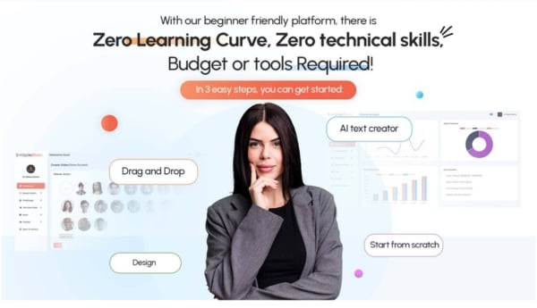 No experience or technical skills required: You don't need to know how to edit videos, market, or understand the tech side. The platform is set up so anyone can start creating professional videos in minutes, skipping any learning curve associated with video creation.