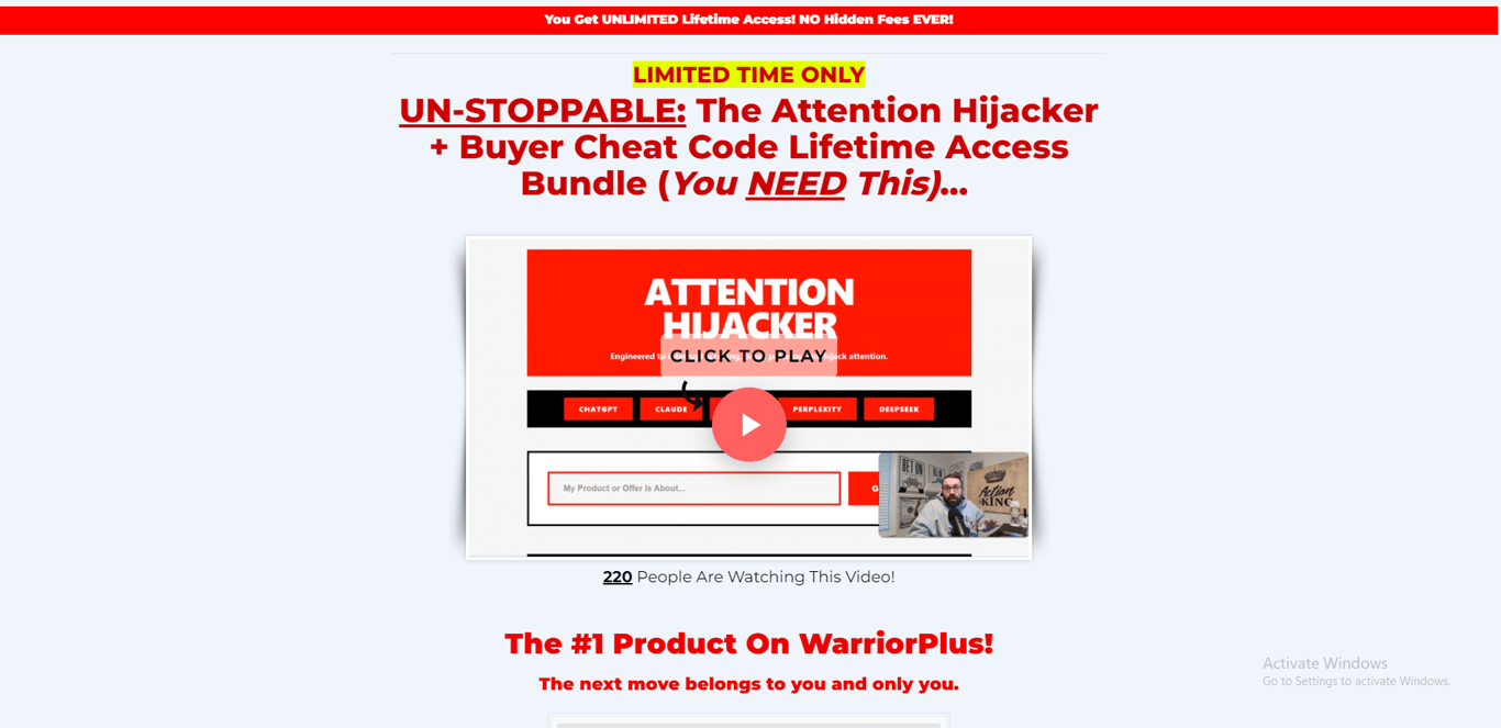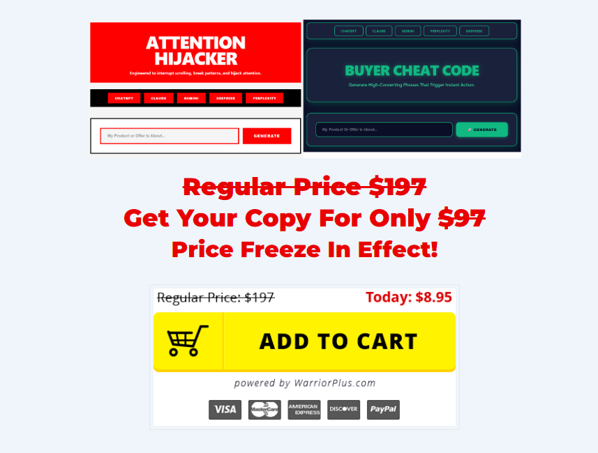 Attention Hijacker is a simple yet powerful tool designed to solve one of the biggest challenges in online marketing: capturing attention and driving action. With a small one-time investment, you gain lifetime access to proven, psychology-based prompts that enhance hooks, emails, ads, and social content.