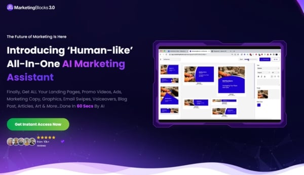 AI Writer – Create countless marketing materials in minutes: With MarketingBlocks AI Writer, you can create high-quality content such as blog posts, emails, sales articles, VSL scripts, books, courses, or business plans in seconds, helping you overcome creative block while saving you significant time and money.
