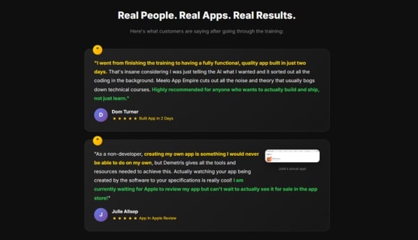 Not all programs guarantee results. Meelo's App Empire program provides training and tools but does not guarantee success.