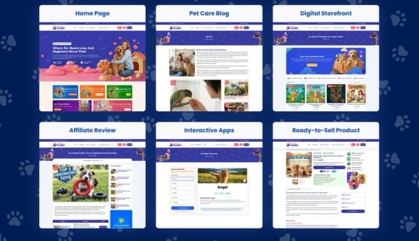 Includes a fully prebuilt, done-for-you WordPress pet authority website with articles, product reviews, digital products, and interactive pet tools.