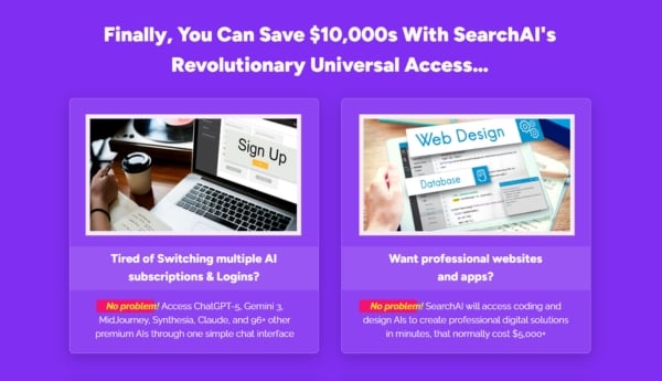 World-Class Advertising Content Writing: SearchAI integrates the capabilities of ChatGPT-5.2, ClaudeAI, Gemini 3, and CopyAI to create compelling sales page content, advertisements, landing page content, and promotional content. SearchAI eliminates the need to guess which AI is right for a specific task. It automatically selects the most suitable AI.
