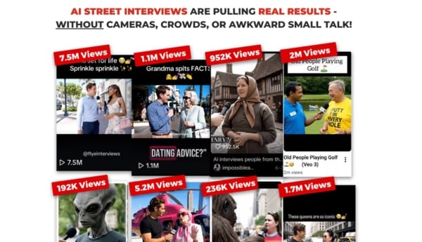 Extremely easy to repeat and scale: A single keyword allows for the creation of multiple interview videos that can be posted across platforms like TikTok, YouTube Shorts, Instagram Reels, Facebook, and LinkedIn. All videos act as traffic assets, helping to drive 24/7 traffic to advertised links, offers, or services across multiple platforms.