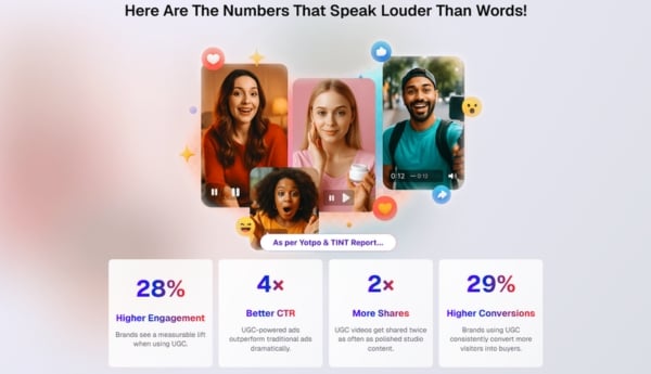 For Affiliate Marketers and Digital Marketers: Perfect for affiliate marketers looking for high-converting social proof videos. Create user-generated reviews and promotional videos that fit the style of TikTok, Reels, and YouTube ads to increase clicks and commissions.