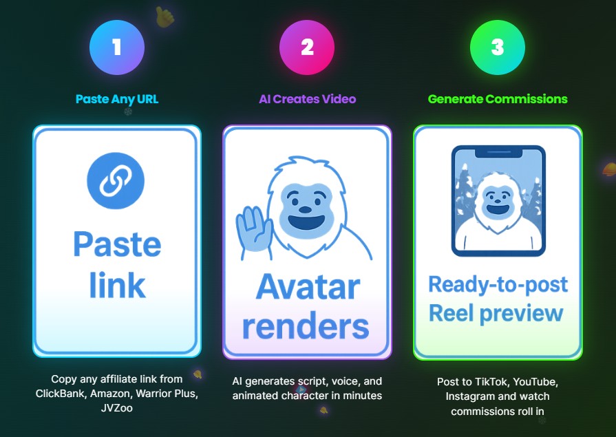 Viral Loop AI is a first-of-its-kind tool that turns standard affiliate links into attention-grabbing video ads. Instead of sharing plain URLs, it uses AI to create fun, character-based videos designed to capture attention and boost conversions. Just paste in an affiliate link from platforms like ClickBank, Amazon, JVZoo, or WarriorPlus, and the software instantly generates a playful yeti-style promotional video—no video skills, expensive production, or complex setup needed.
