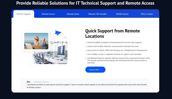 For individual and family users: AnyViewer is also very useful for those helping family or friends troubleshoot computer problems, and for those who want to access their computers remotely. Having a free version also helps to lower the barrier to entry.