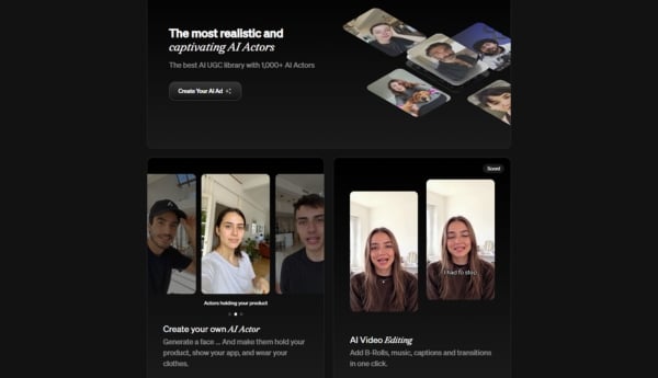 Super realistic AI actors: The platform's AI avatars are created to resemble real creators and provide a more authentic/user-generated feel compared to traditional AI videos.
