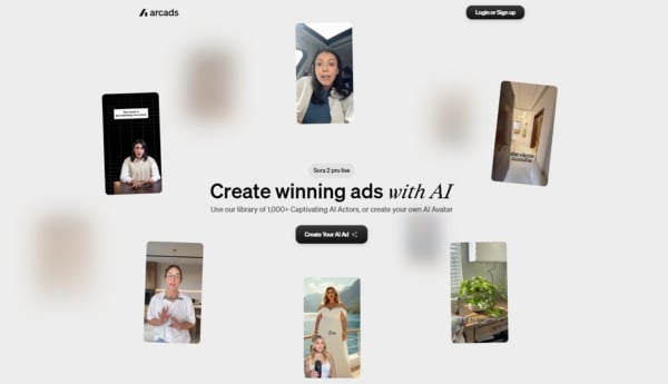 No need for a camera, create high-converting video ads: Arcads AI eliminates the #1 bottleneck in video advertising: Production. You don't need a camera, actors, a studio, or an editor. You just write a script, select AI actors, and produce a ready-to-run video ad that looks like authentic user-generated content (UGC), the kind that performs best on TikTok, Instagram, YouTube, and Facebook.