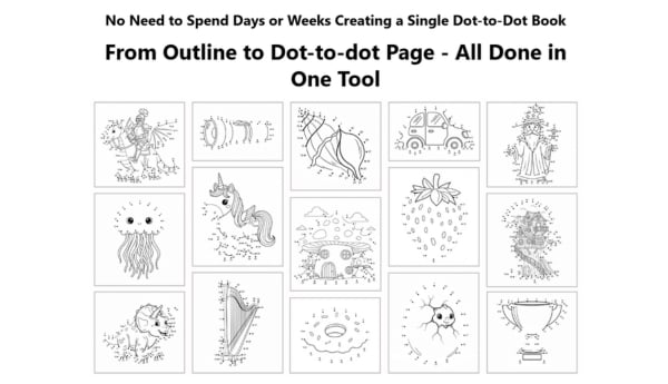 No design or drawing skills required: You don't need to draw, trace, or even know how to design illustrations; just drag and drop. The integrated AI and visual editor do all the hard work for you, making it easy for anyone to create beautiful connect-the-dots pages.