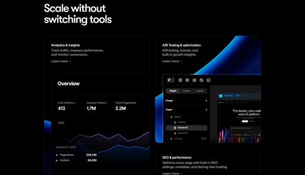 Technology & Multimedia Companies: Framer AI works great for tech startups, SaaS platforms, and media companies that need powerful, UI-focused websites with custom animation elements. It allows teams to prototype complex interactions without getting lost in a sea of front-end code.
