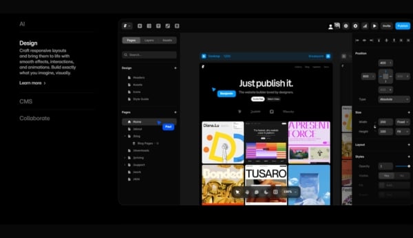 Framer is really good at interactive design and speed. It's perfect if you're a designer who needs high-quality images and smooth animations, while Webflow might be more suitable for more complex projects using multiple CMSs.