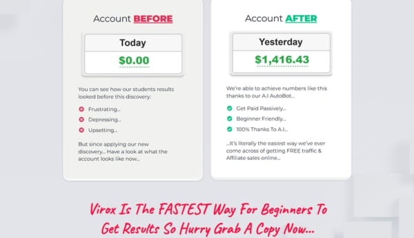 Virox itself is not a complete affiliate marketing system: Virox primarily focuses on traffic distribution: It works best when combined with compelling offers and close monitoring.