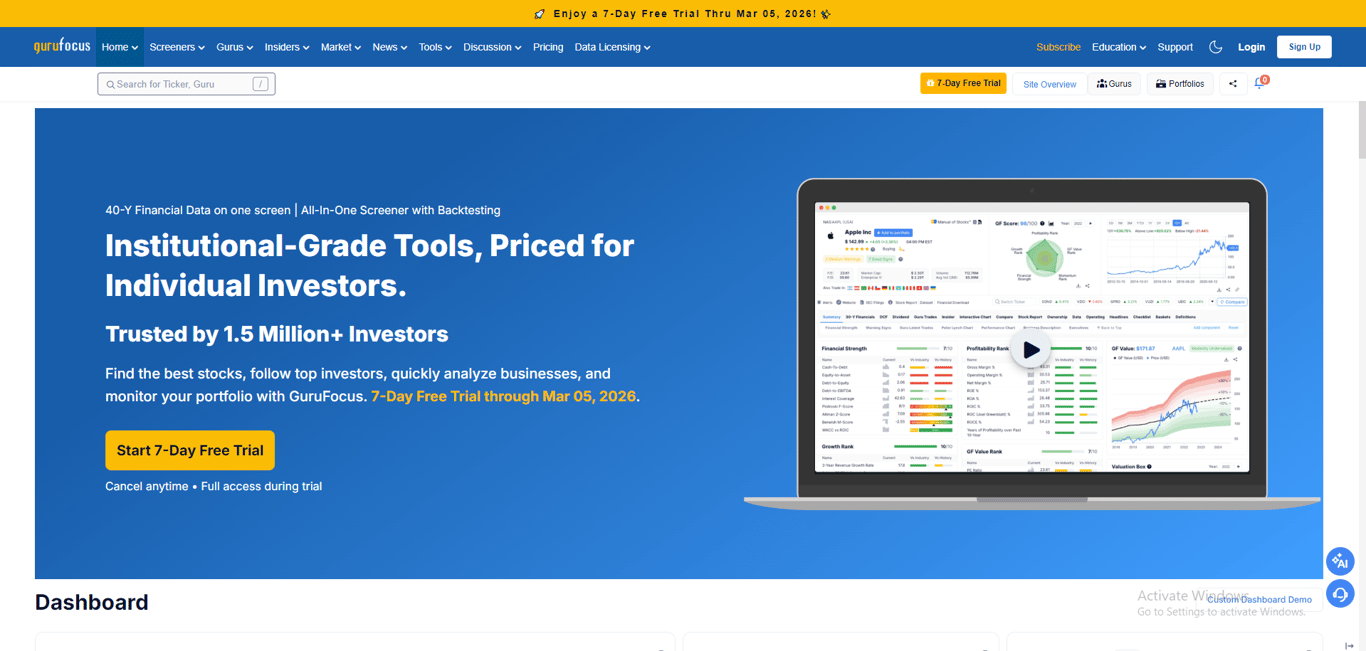 This is where GuruFocus makes a difference, providing advanced tools and rich financial data that help investors act with confidence and clarity.